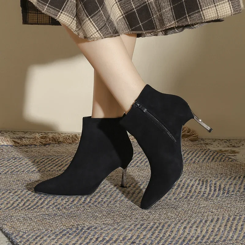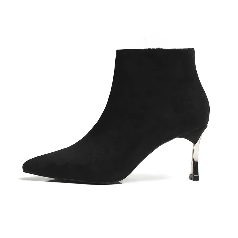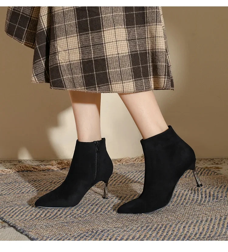 Seasonal & TrendyIdeal for winter/fall — the plush suede texture adds warmth, while the metallic heel detail brings a modern, chic touch.