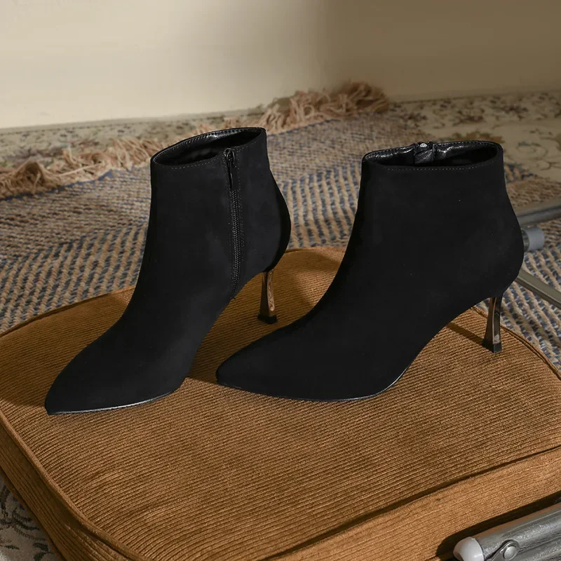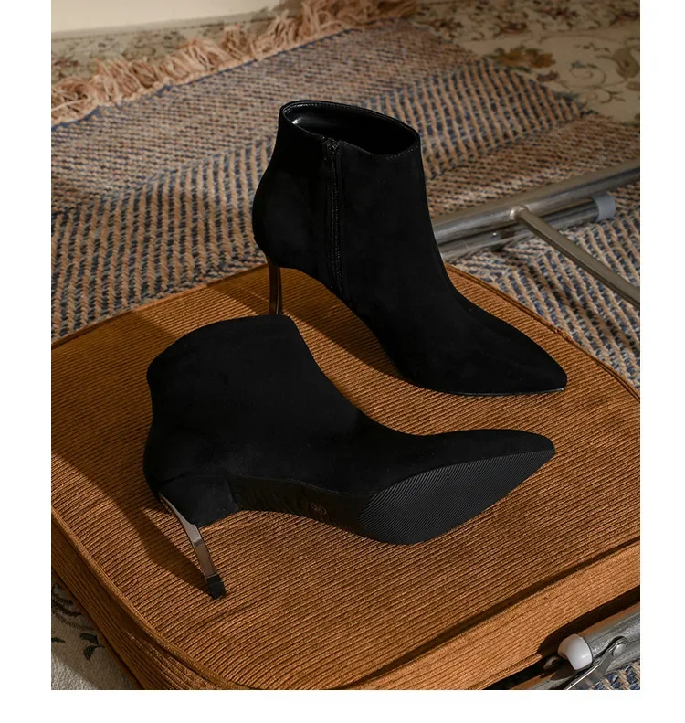 Elegant Design & Versatile StylingThe black suede pointed-toe + sleek stiletto heel combo elevates outfits (dresses, jeans, skirts) — perfect for daily wear, parties, or office looks.