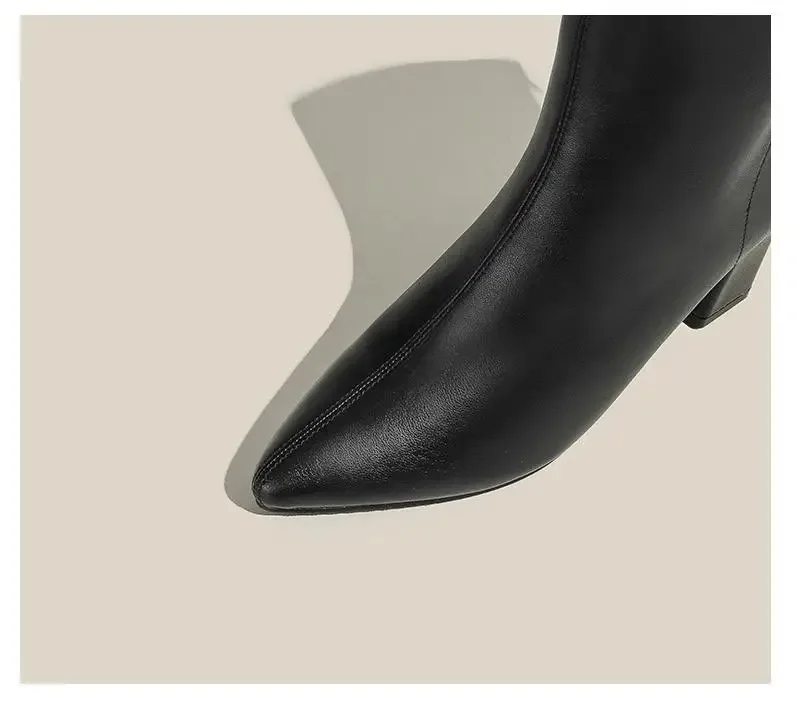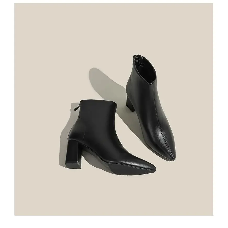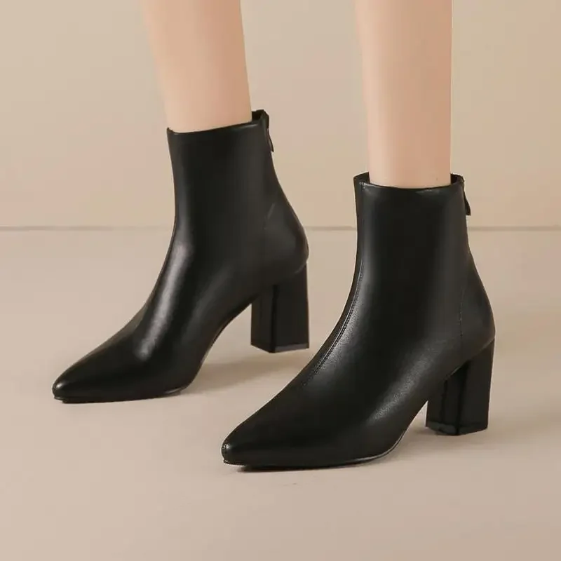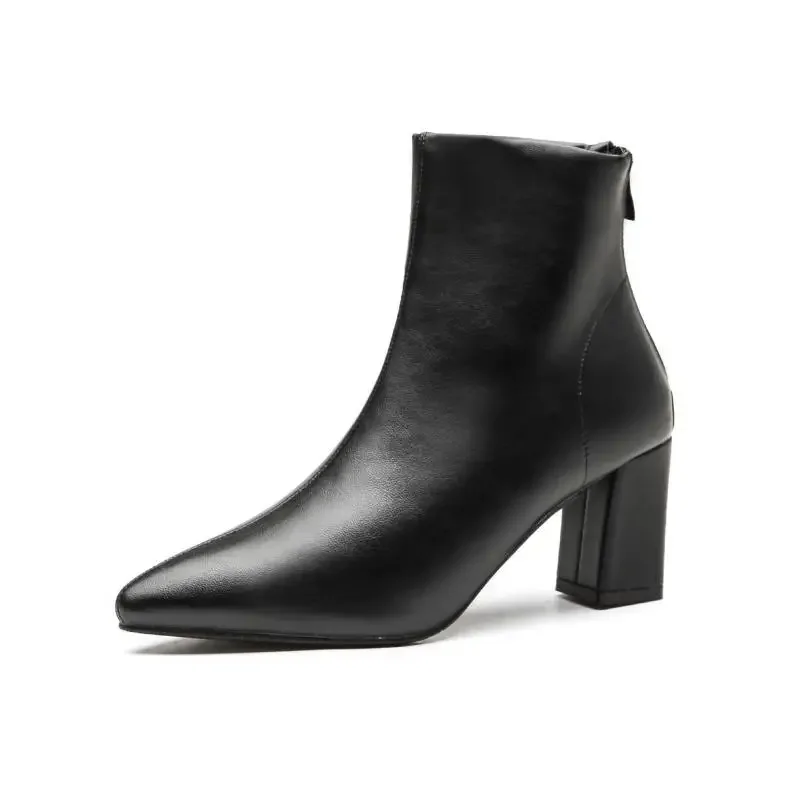 WB-0031 Size 31-43 Pointed Toe Chunky Heel Plus Size Black Ankle Boots 7cm High Heel Winter Women Short Boots