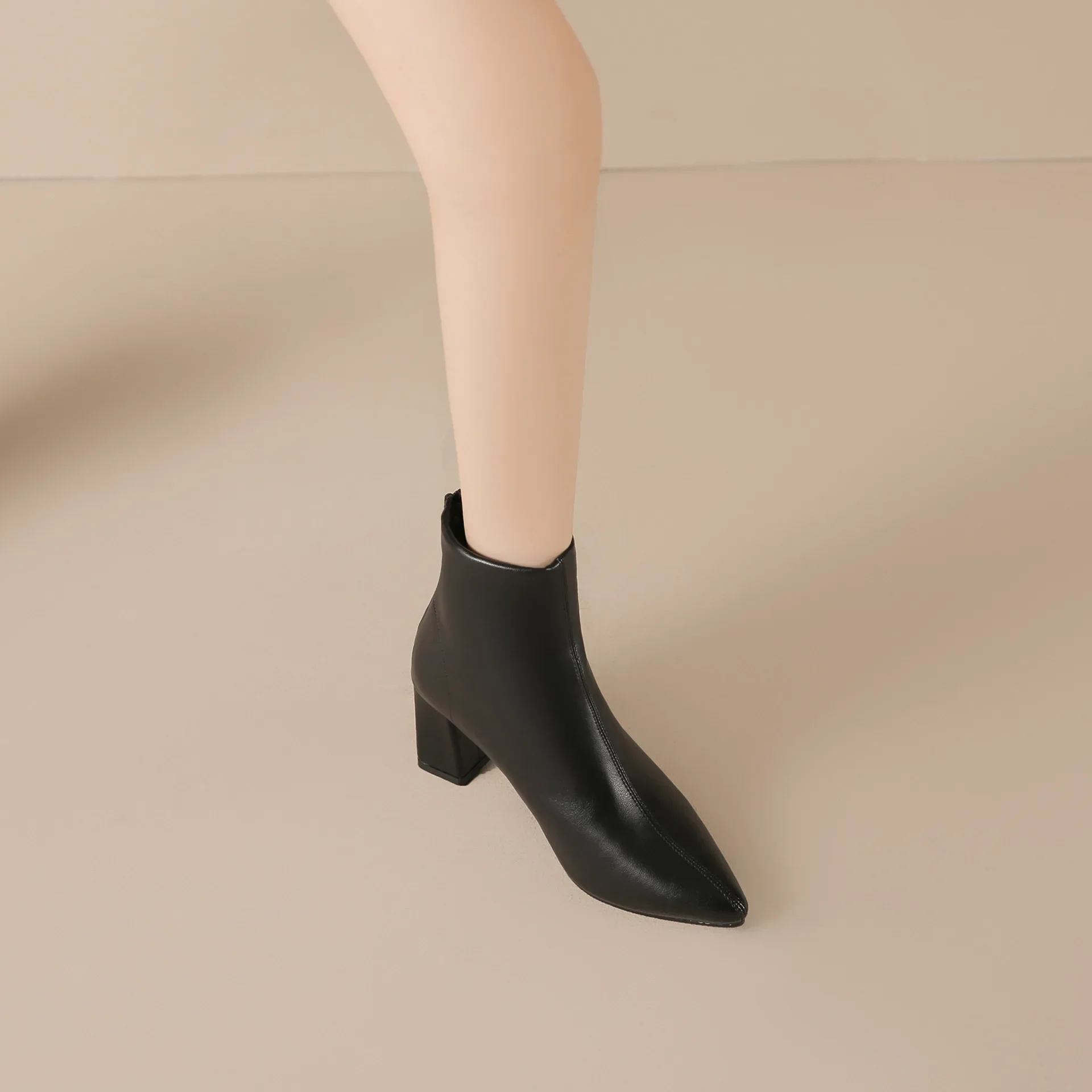 Be the first to review “WB-0031 Size 31-43 Pointed Toe Chunky Heel Plus Size Black Ankle Boots 7cm High Heel Winter Women Short Boots”