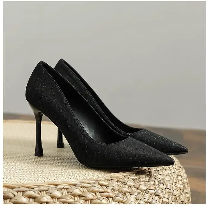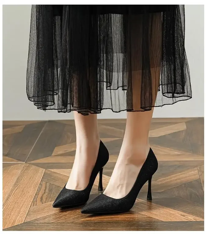WP-0003 Stiletto Heel Pointed High Heels Women High Heel Pumps Black Women’s Shoes Solid Color Large Size 30-44