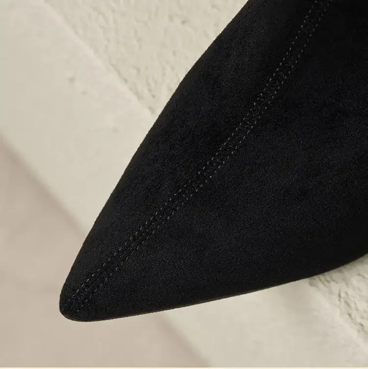 • Elastic suede upper fits narrow/wide feet snugly; easy to slip on/off for daily/party wear.