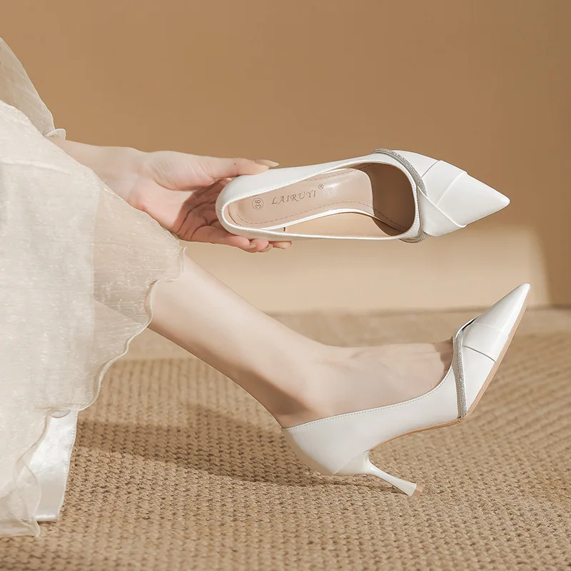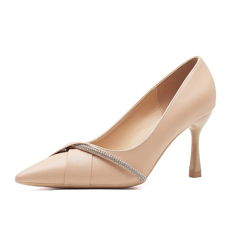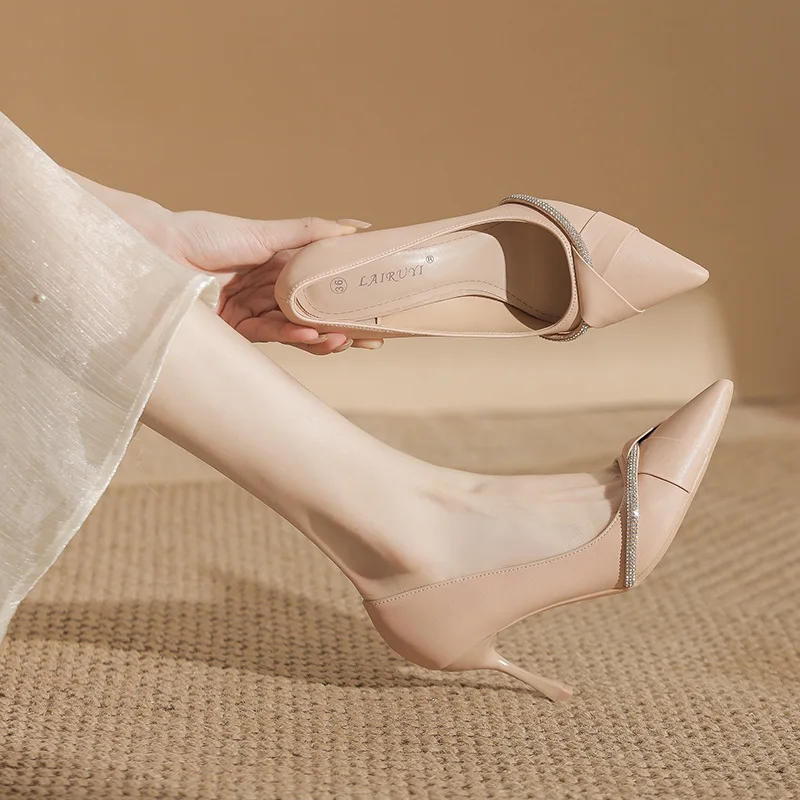 These elegant pointed-toe heels feature a sleek stiletto design (5cm/7.5cm/10cm heel heights) and sparkling rhinestone accents, perfect for elevating office looks or evening outfits. Available in extended sizes 31-44 (including hard-to-find small/large sizes), with classic nude/black/white colors that match any wardrobe. Crafted for comfort and style, ideal for all-day wear at work, weddings, or cocktail parties.
