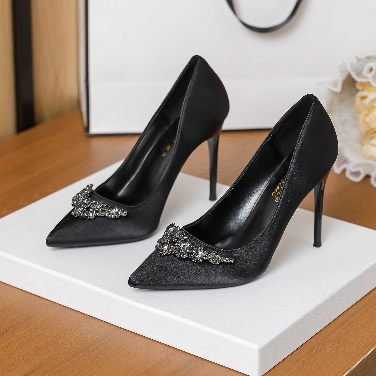 3. Luxury satin fabric with sparkling rhinestone embellishment (durable & eye-catching)