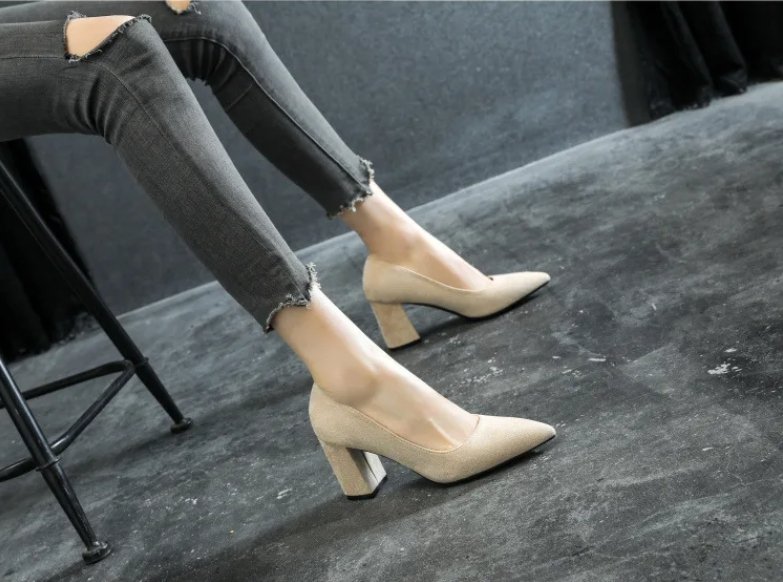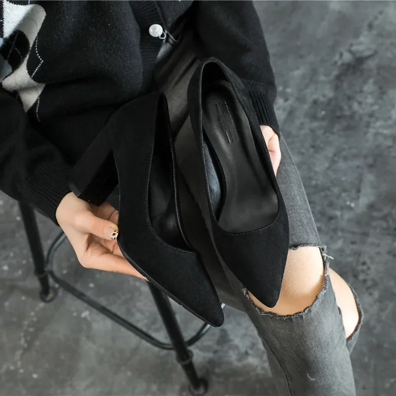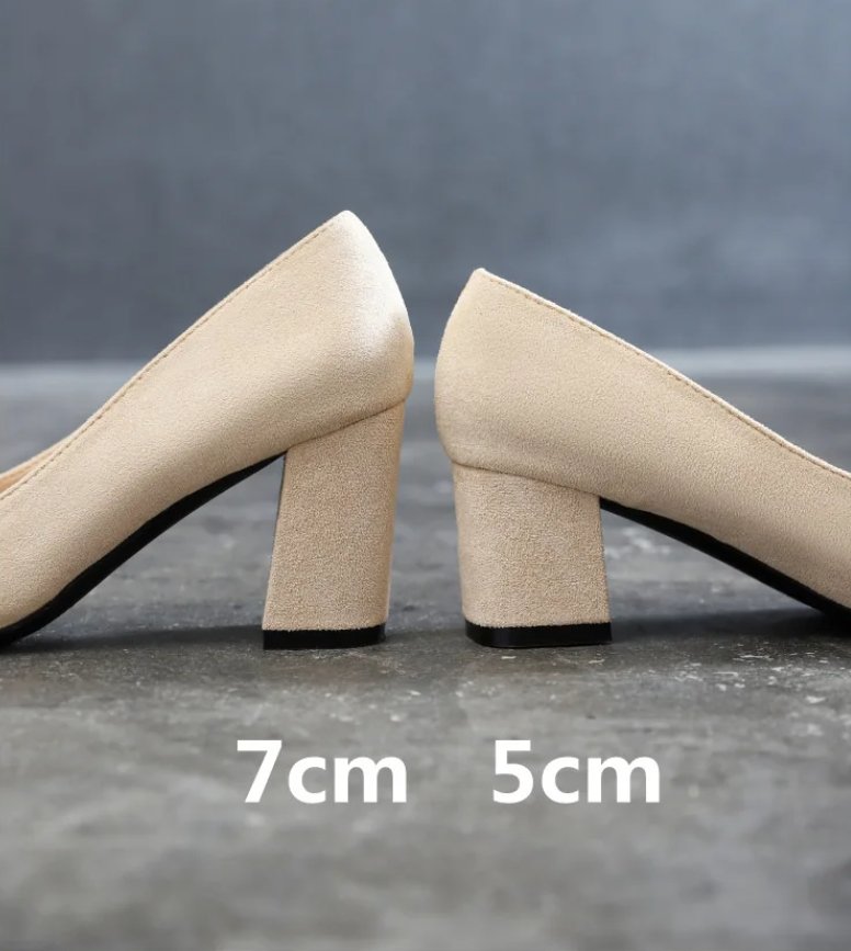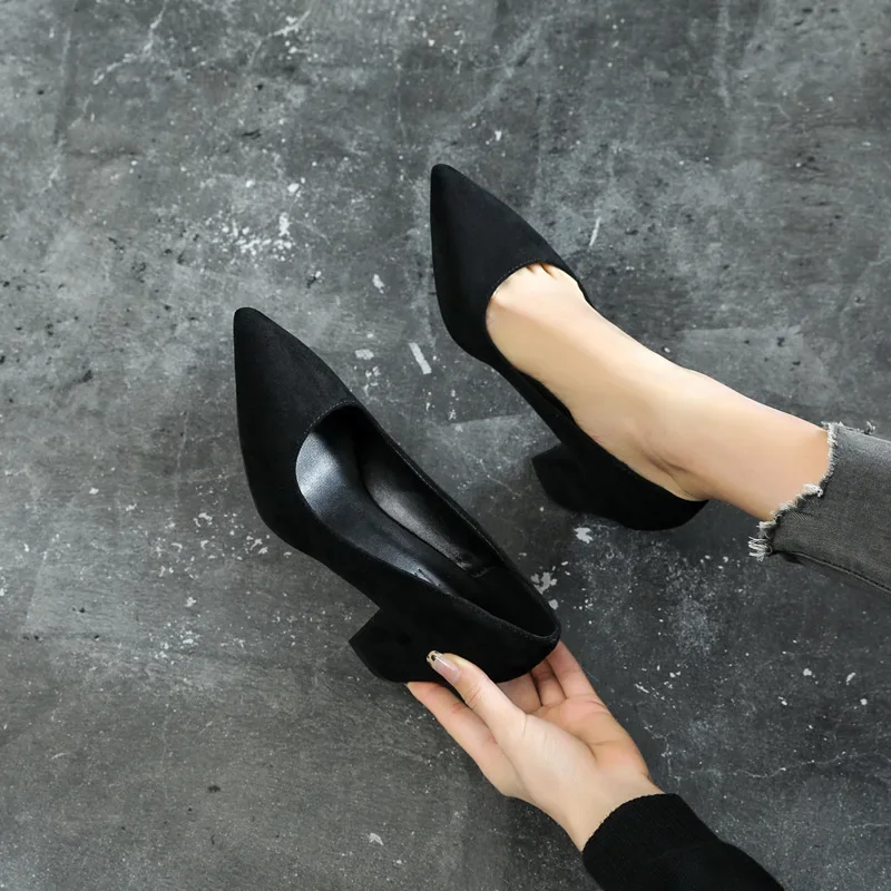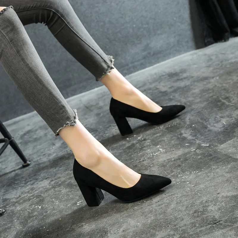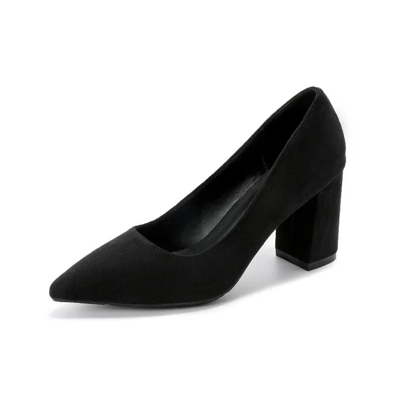 WP-0035 Women’s Chunky Heel Pumps Black Suede Pointed Toe High Heels Sizes 30-44 Comfortable Dress Shoes for Work & Party