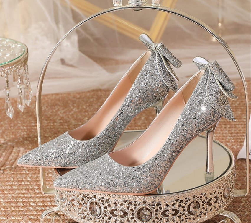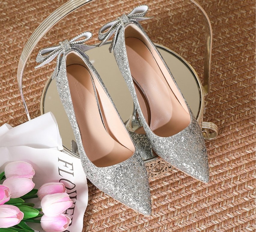 Be the first to review “WP-0037 Size 30-44 Wedding Shoes Bride Bridesmaid High Heels Silver Sequins Glitt Thin Heel Bow Stiletto Heel Point Toe Pumps Women”